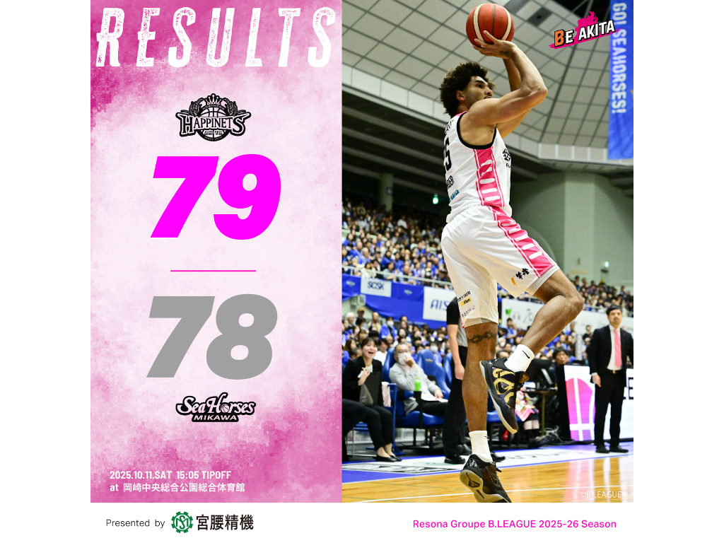 【試合結果】10/11(土)第2節 VSシーホース三河GAME1@岡崎中央総合公園総合体育館