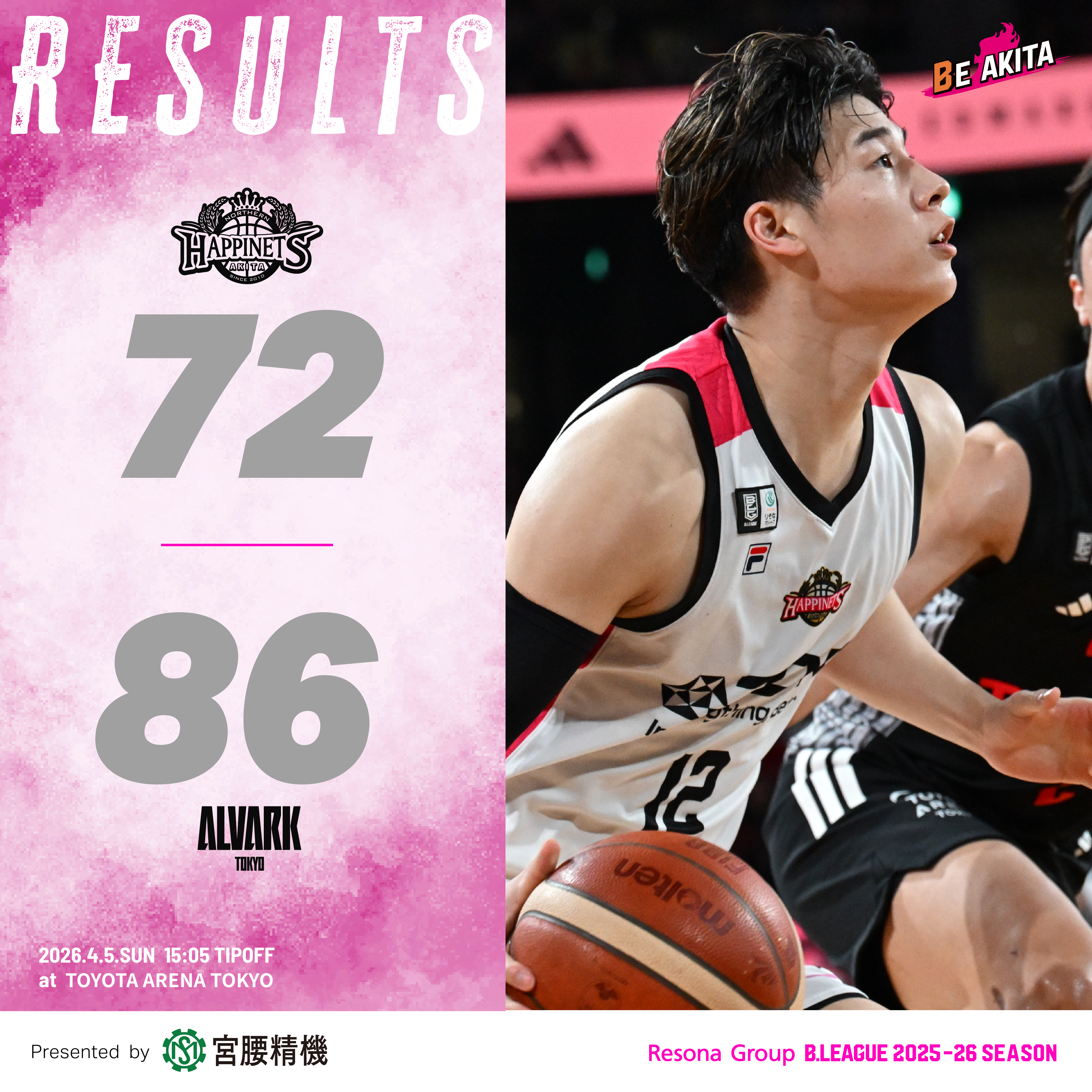 【試合結果】4/5(日)第29節 VS アルバルク東京 GAME2@TOYOTA ARENA TOKYO