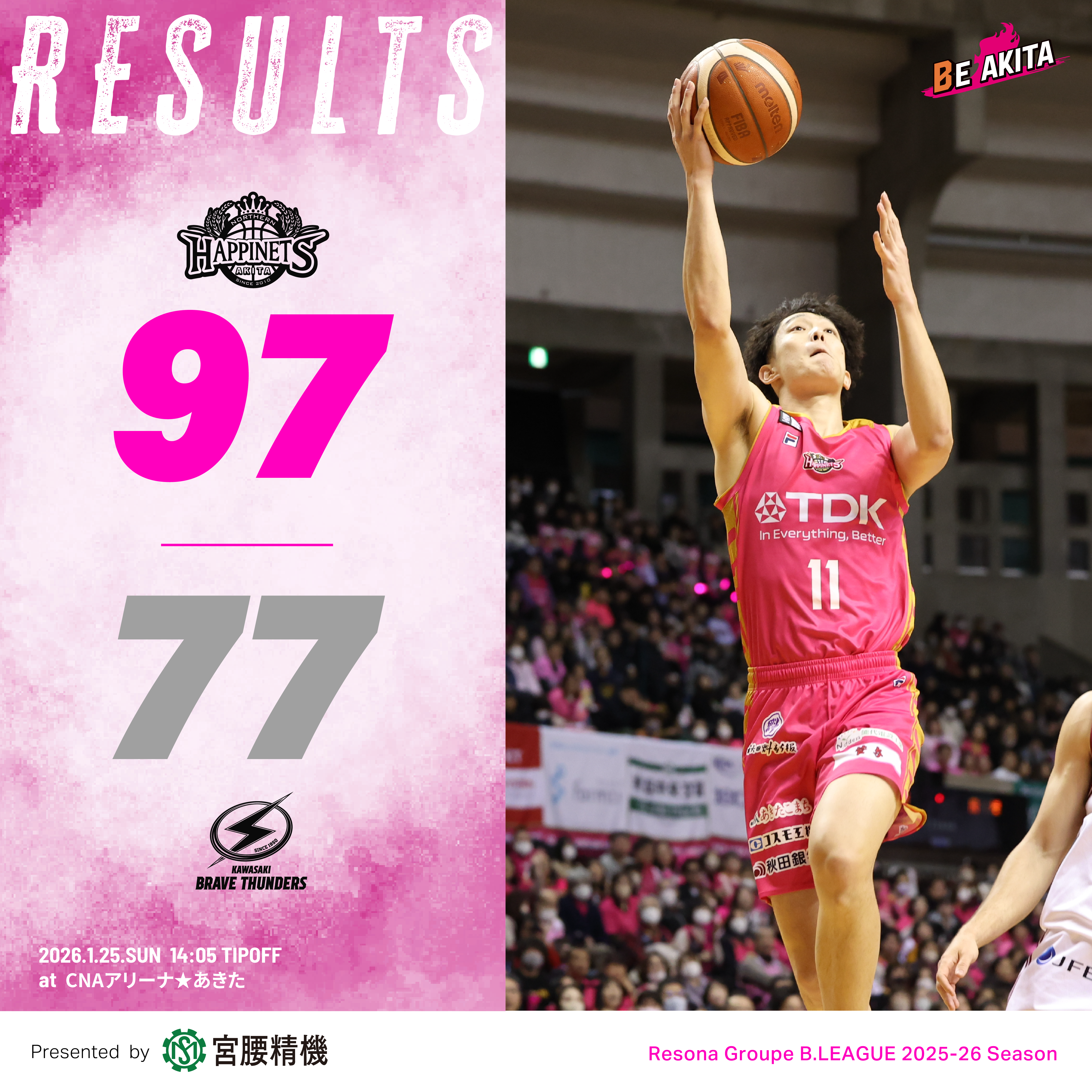 【試合結果】1/25(日)第19節 VS 川崎ブレイブサンダースGAME2@CNAアリーナ☆あきた