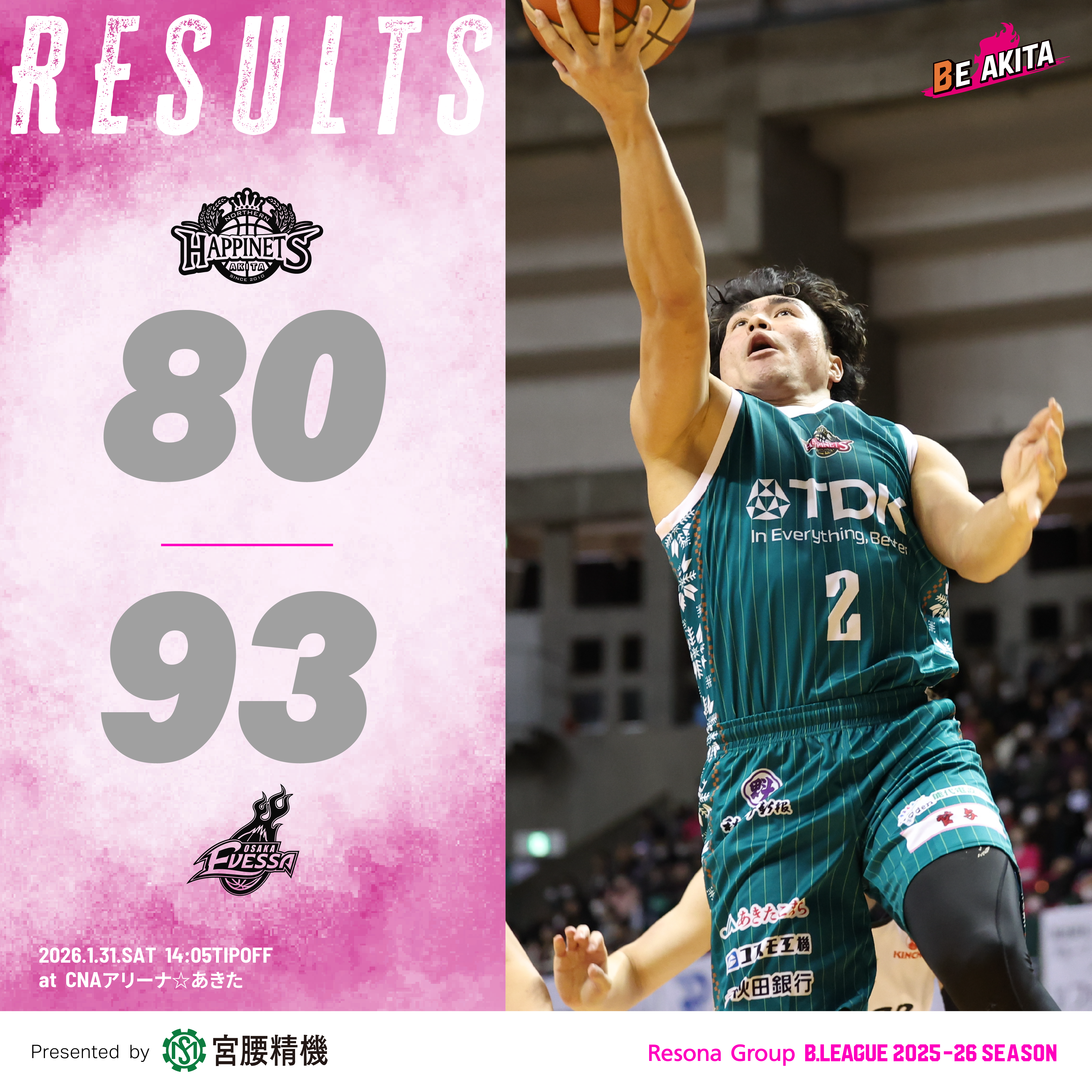【試合結果】1/31(土)第21節 VS 大阪エヴェッサGAME1@CNAアリーナ☆あきた