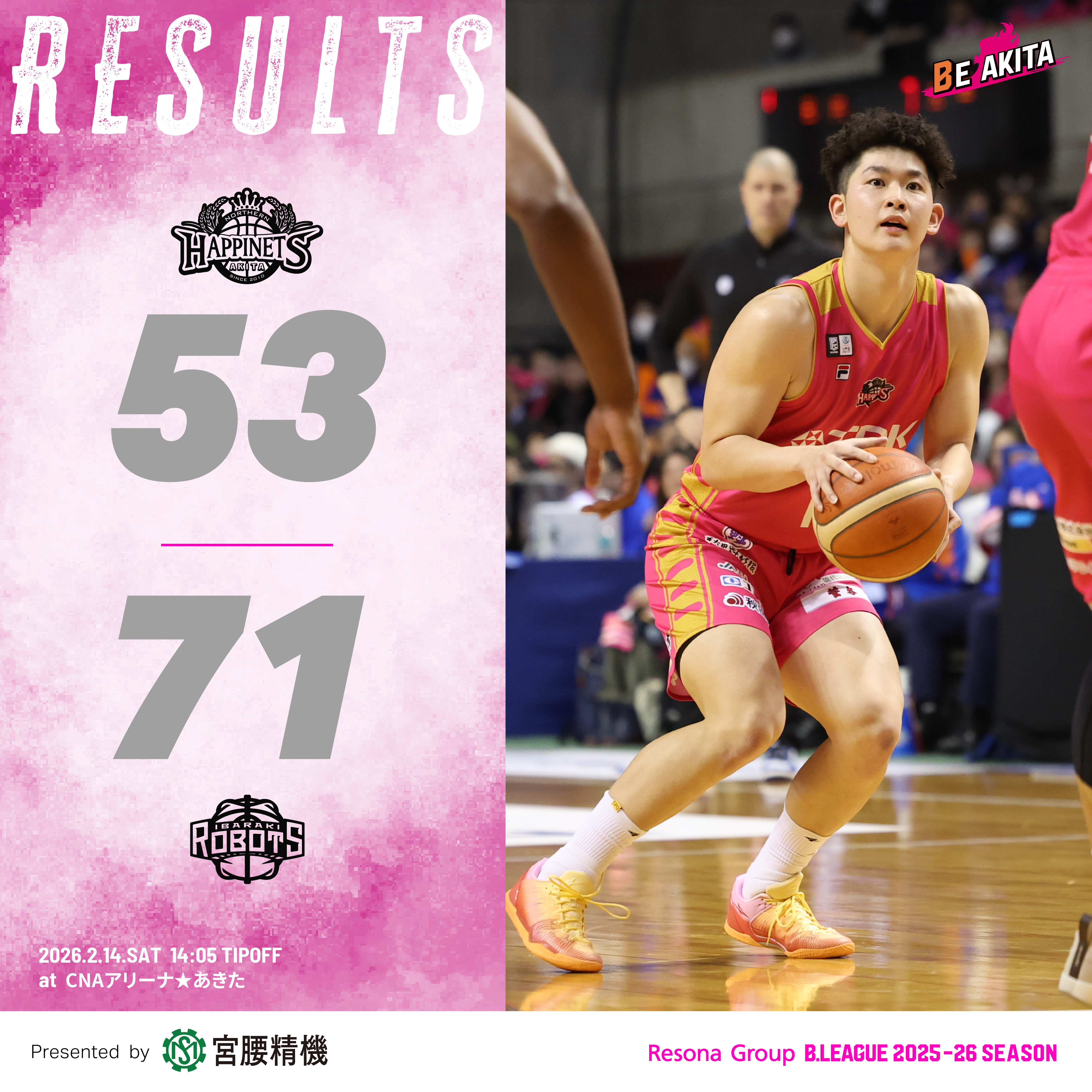 【試合結果】2/14(土)第23節 VS 茨城ロボッツ GAME1@CNAアリーナ☆あきた