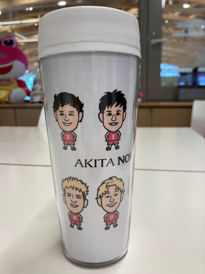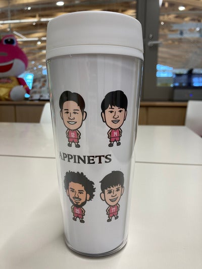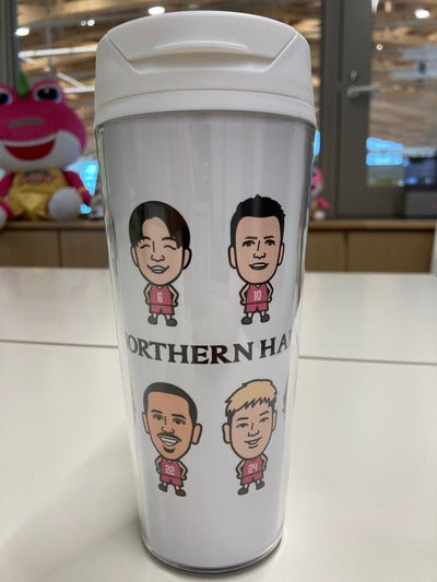 選手の似顔絵キャラクターをデザインしたオリジナルタンブラーです。