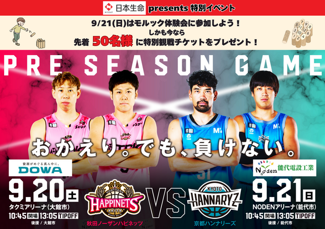 この度、秋田ノーザンハピネッツでは、能代市で開催する9月21日 (日)の 京都ハンナリーズ戦にて、 『日本生命 presents モルック体験会』を実施します!