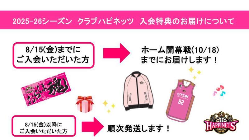 【クラブハピネッツ】2025-26シーズン 入会特典の発送スケジュールとホームゲームでの特典について