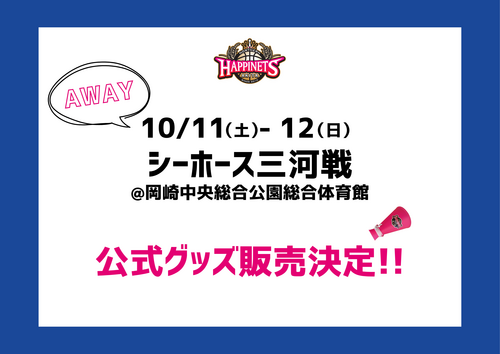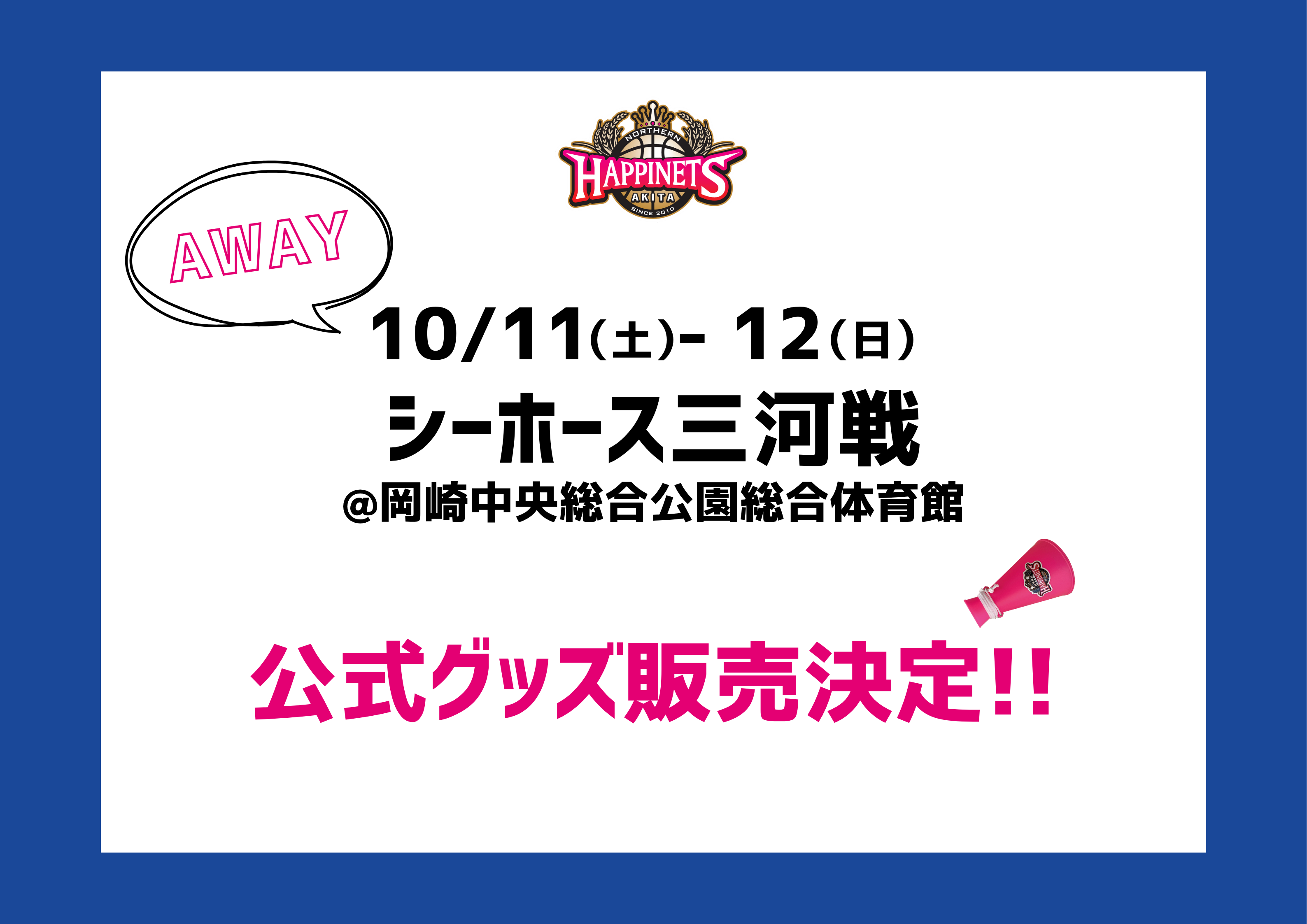 【アウェー】10月11日(土)12日(日)vs シーホース三河