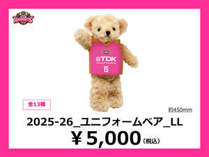今シーズンのユニフォーム姿で可愛さ倍増。お気に入りの推しのベアは在庫がなくなる前にゲットしてね!