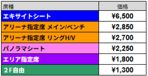 ■対象席種・販売価格
