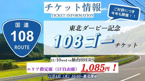 昨シーズン、東北ダービー開催記念の企画チケットとして、販売を開始した"108ゴー チケット"