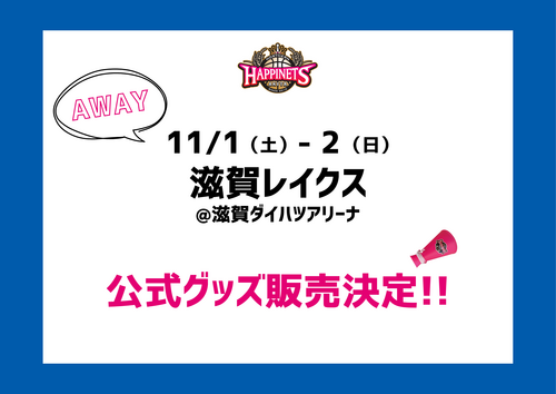 【アウェー】11月1日(土)2日(日)vs 滋賀レイクス