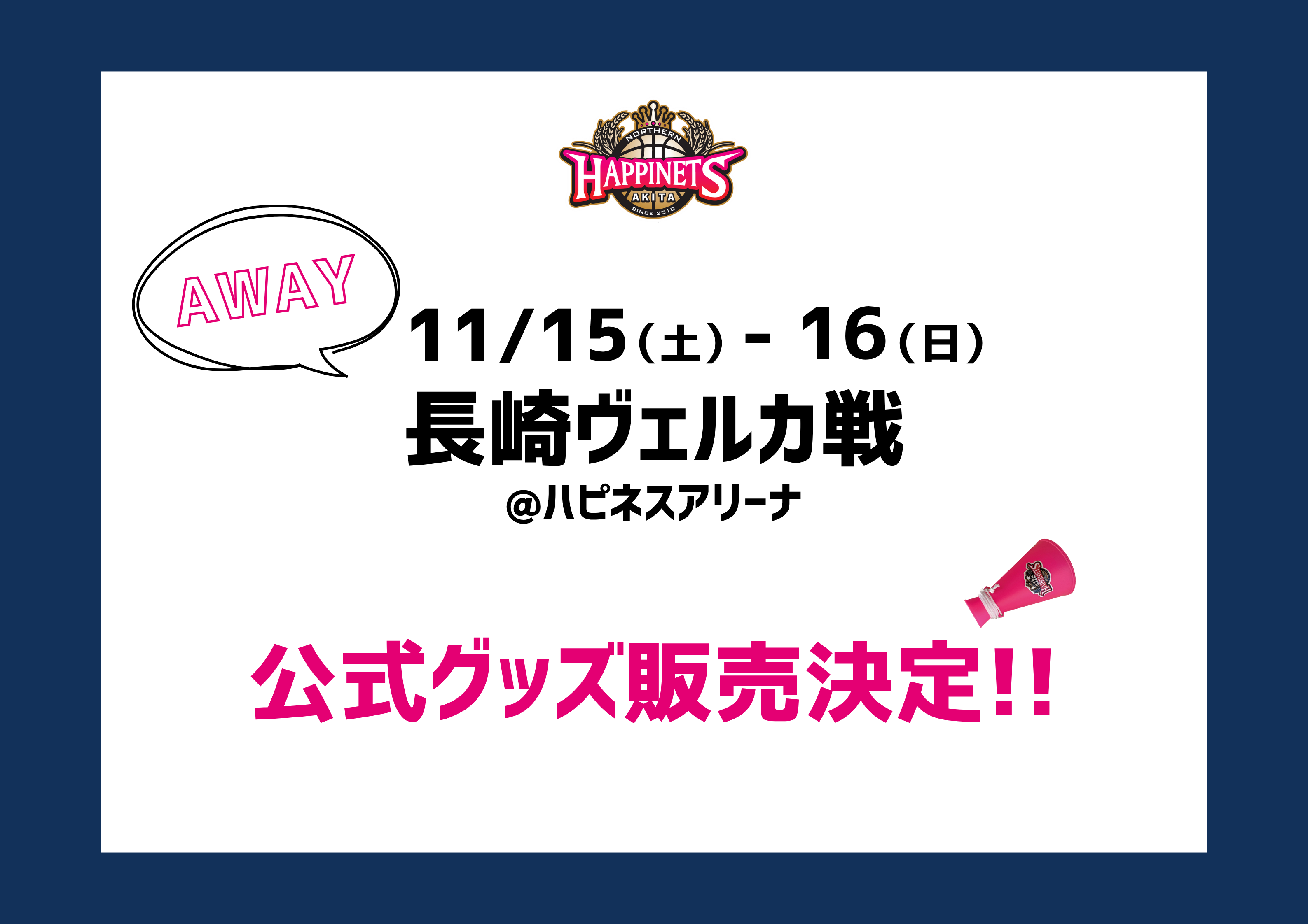【アウェー】11月15日(土)16日(日)vs 長崎ヴェルカ