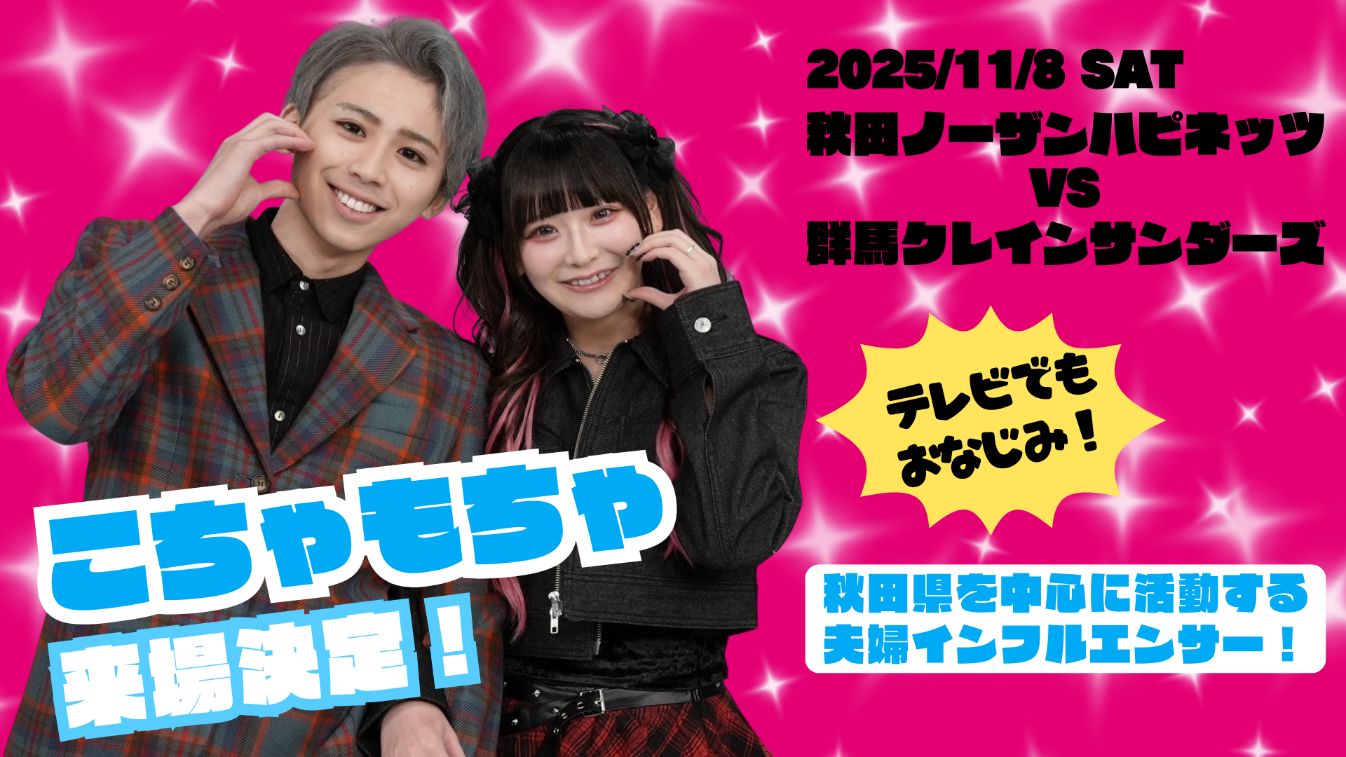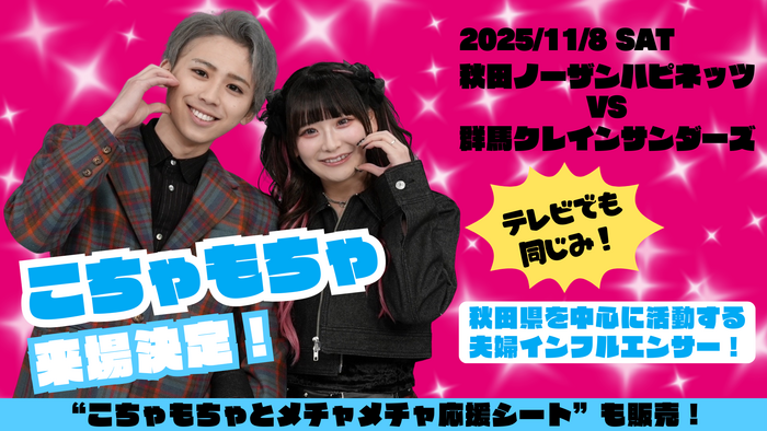 11月8日(土)の群馬クレインサンダーズ戦に、秋田県で活動する夫婦インフルエンサーの“こちゃもちゃ”さんの出演が決定しました!