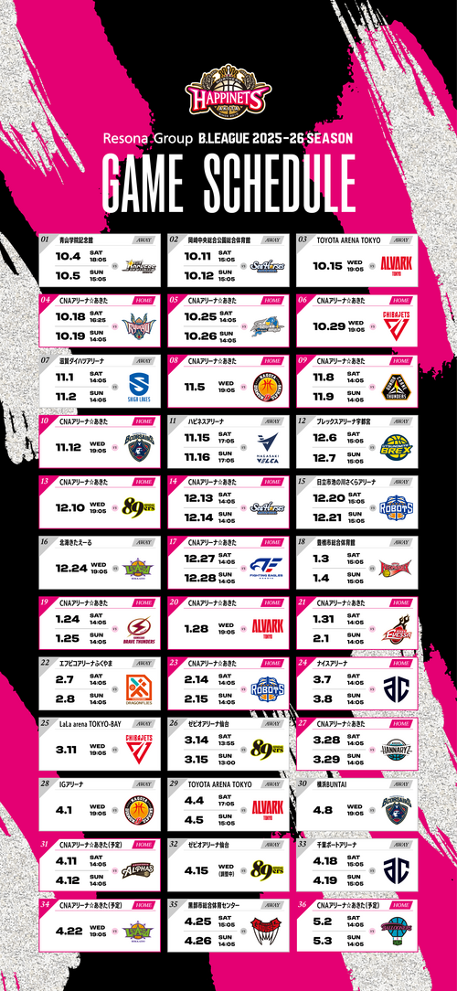 この度、りそなグループB.LEAGUE 2025-26シーズンにおける後半戦(第19節~第31節)の試合開始時間が発表されました。