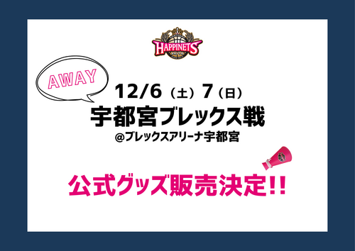 【アウェー】12月6日(土)7日(日)vs 宇都宮ブレックス