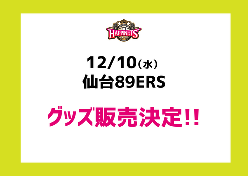試合情報▶【試合情報】12月10日(水)vs 仙台89ERS