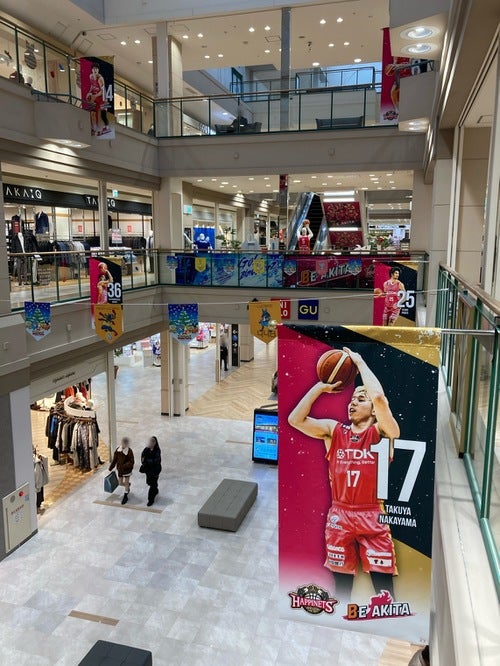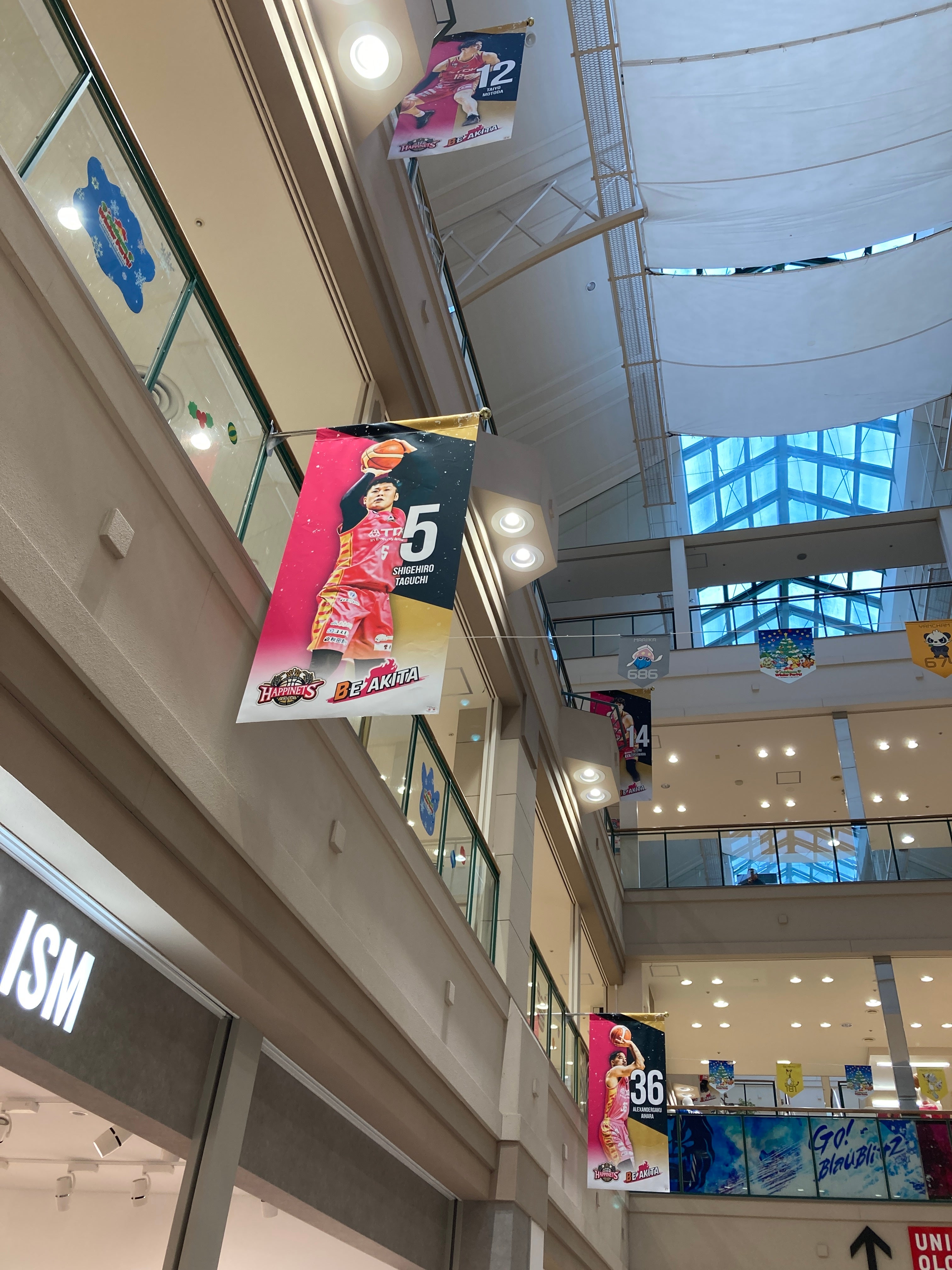 イオンモール秋田の館内装飾に選手のフラッグバナーが追加されました!