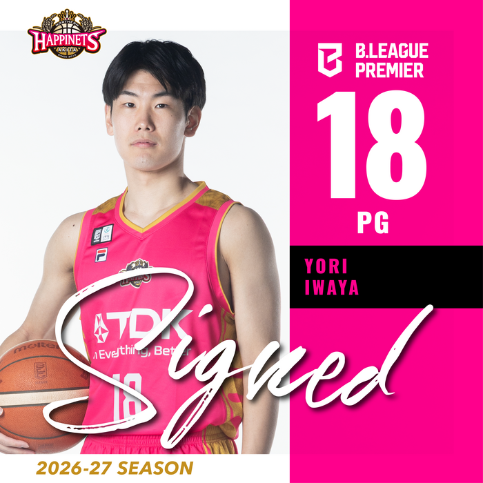 この度、秋田ノーザンハピネッツでは、「B.LEAGUE DRAFT 2026」において1巡目5位指名し交渉権を獲得した岩屋頼選手と、Bプレミア初年度となる2026-27シーズンの選手契約が合意に達しましたのでお知らせします。