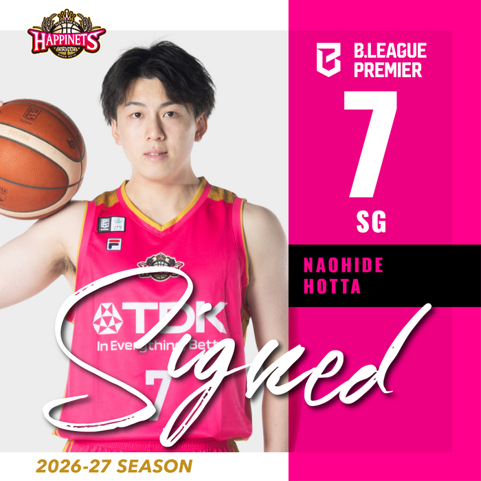 この度、秋田ノーザンハピネッツでは、「B.LEAGUE DRAFT 2026」において3巡目1位指名し交渉権を獲得した堀田尚秀選手と、Bプレミア初年度となる2026-27シーズンの選手契約が合意に達しましたのでお知らせします。