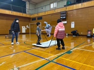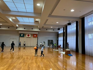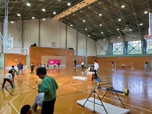 ③交流:秋田ノーザンハピネッツジュニアスポーツ教室担当のスタッフによる指導や、地域の子どもたちとの交流