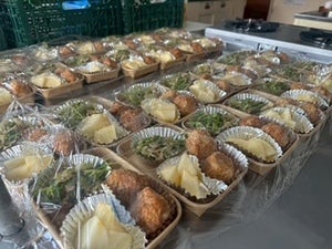 ①食事の提供:キッチンカーによる温かい食事や弁当の配布