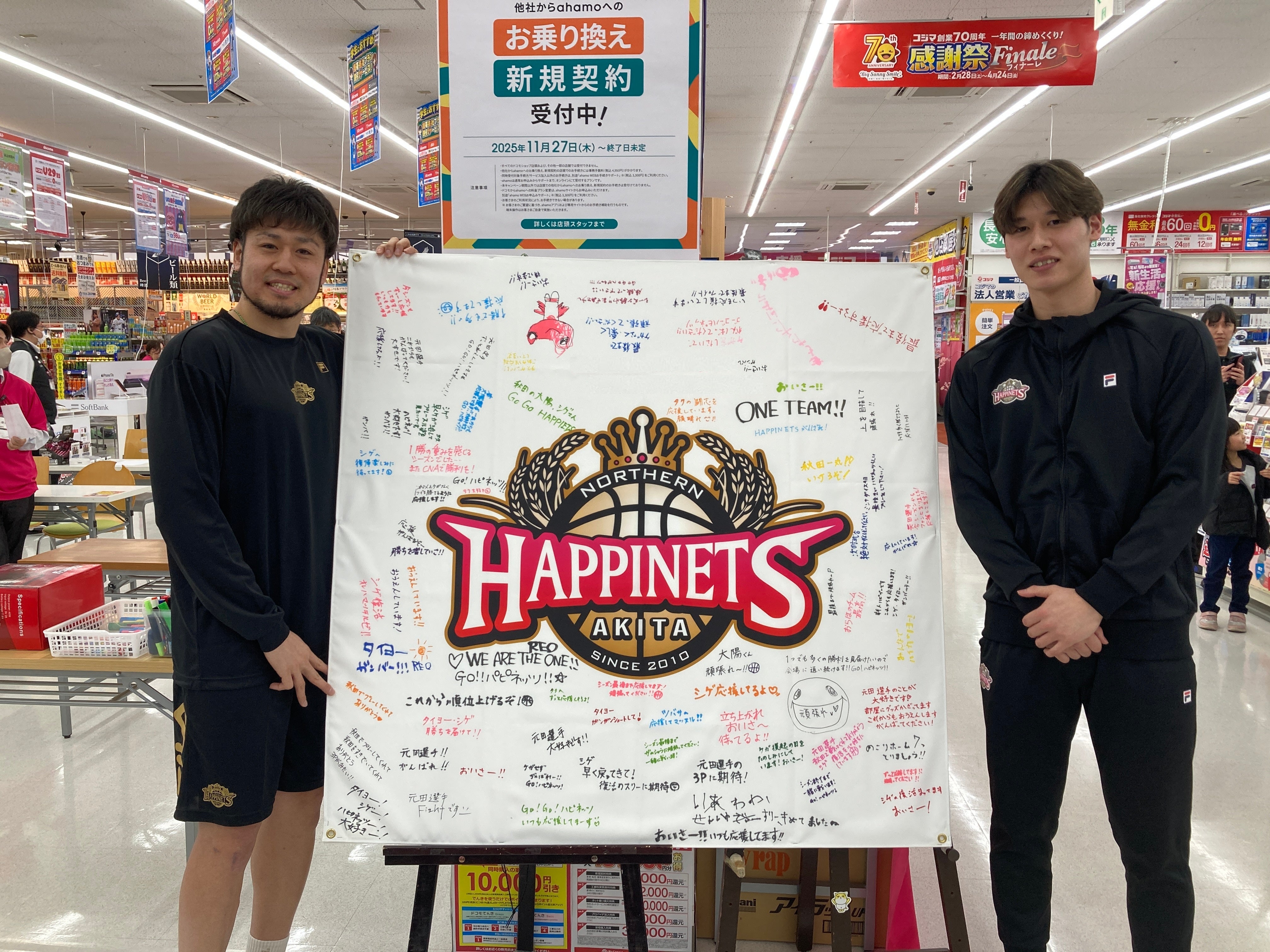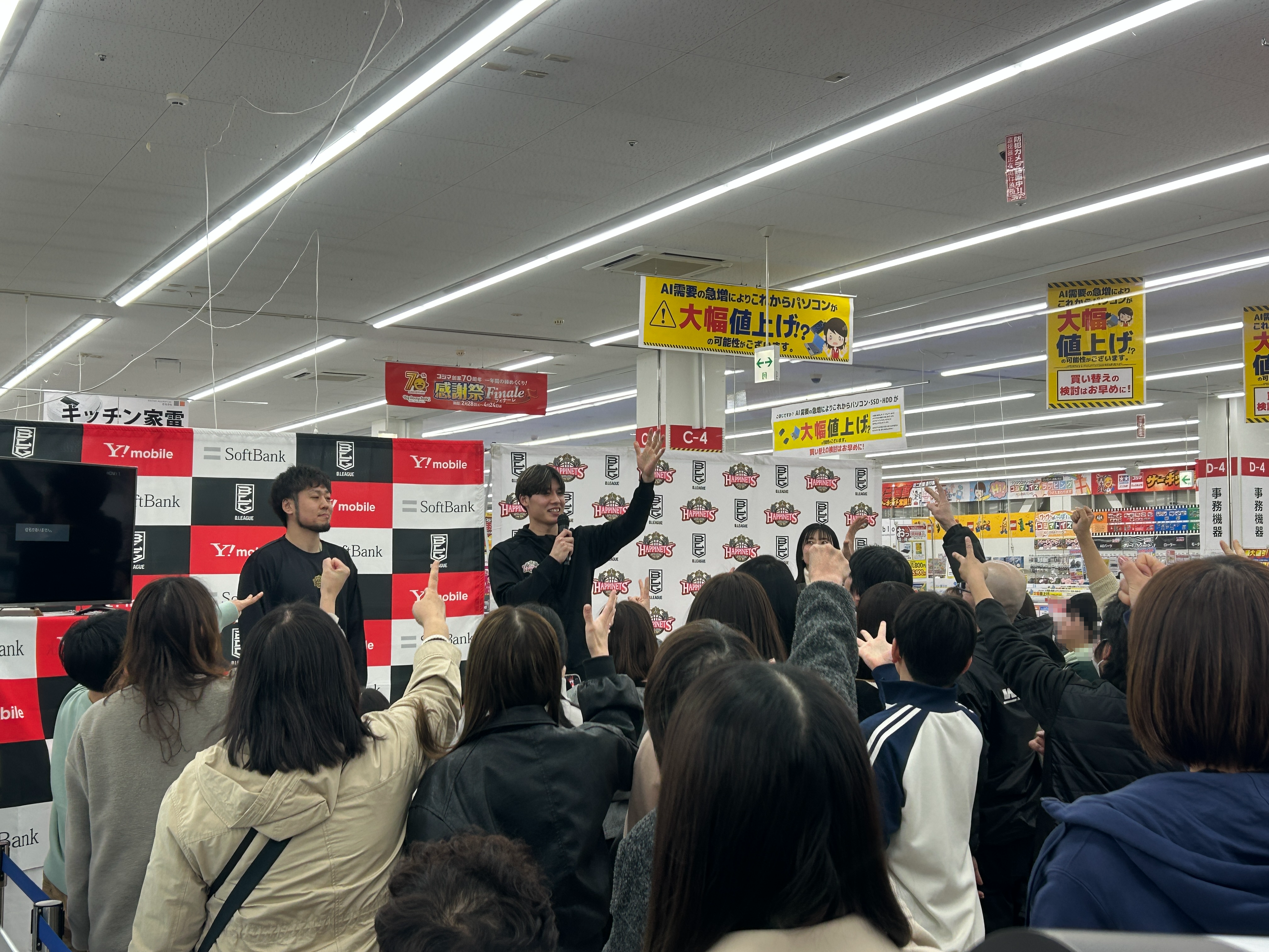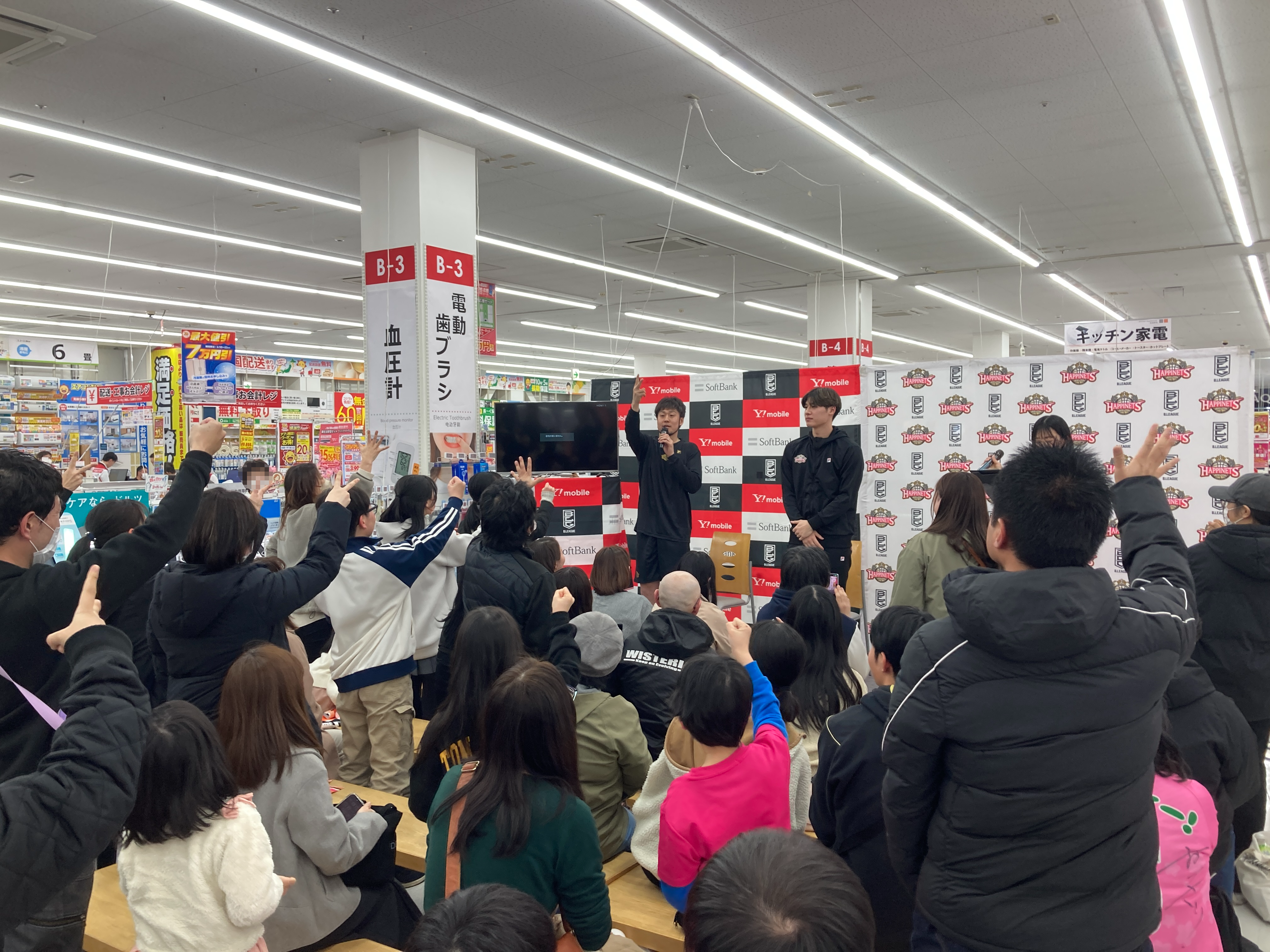 2026年3月21日(土)、B.LEAGUEトップパートナーであるソフトバンク株式会社さま主催のもと、「コジマ×ビックカメラ 卸団地店」にて、秋田ノーザンハピネッツの選手参加イベントを開催いたしました。