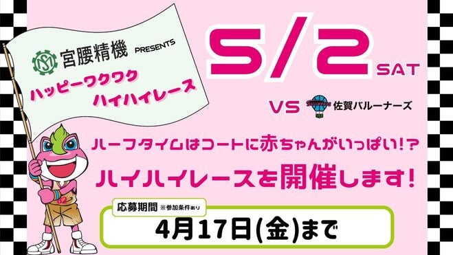 5月2日(土)VS 佐賀バルーナーズGAME1のハーフタイムにて、「宮腰精機presentsハッピーワクワクハイハイレース」を開催します!