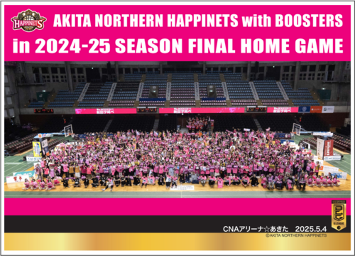 5月3日(日)佐賀バルーナーズ戦の2025-26シーズン ホーム最終戦で、ご来場のお客様と選手・チームスタッフ・チアダンスチーム・ボランティアスタッフ・ハッピークルー・MC、ビッキー・ラーナちゃんの「大集合写真」を撮影、販売いたしますのでお知らせします。