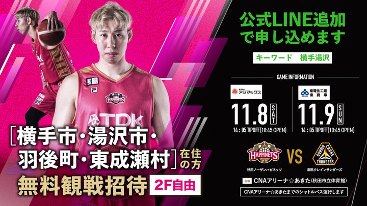 ※申込みにはLINE,B.LEAGUEチケットが必要になります。