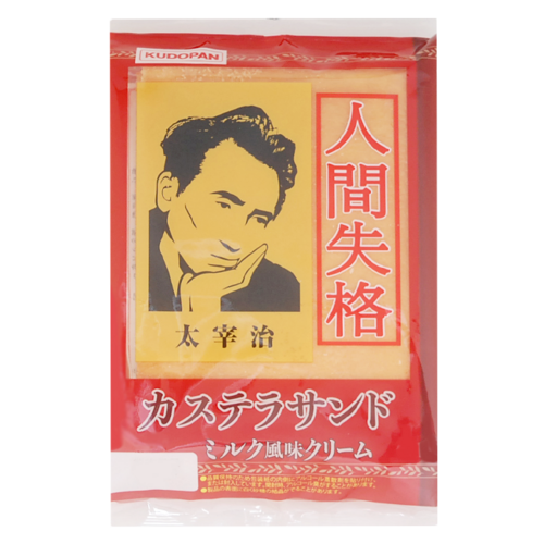 太宰治の生誕100周年を記念して作られたご当地パン。「人間失格カステラサンド」のネーミングとは裏腹に優しいミルク風味クリームをサンド。
